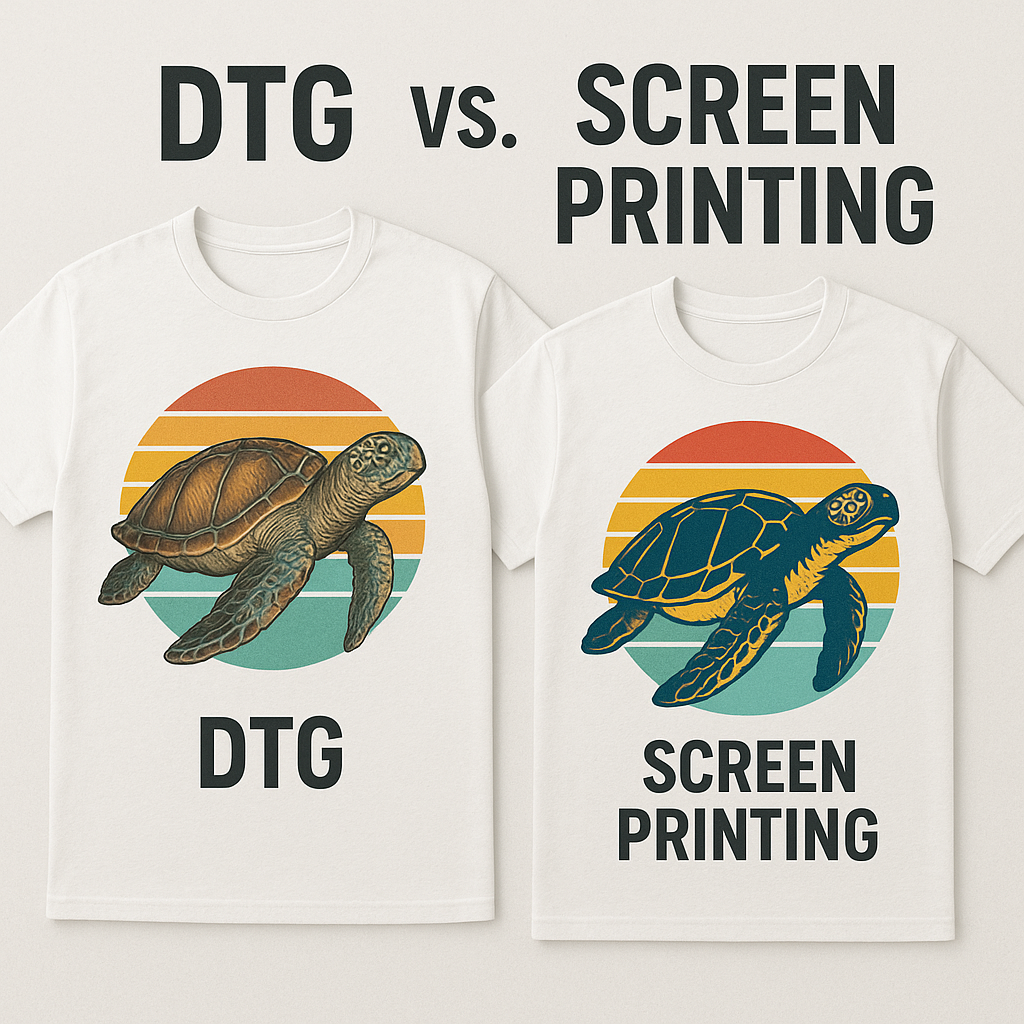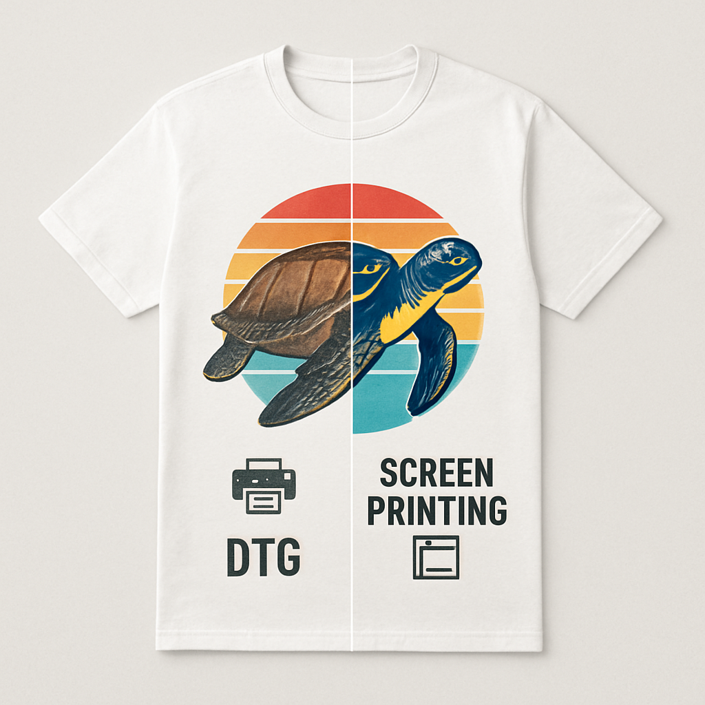 - Design & color: DTG shines on full‑color and detailed art; Screen printing suits solid spot‑color graphics